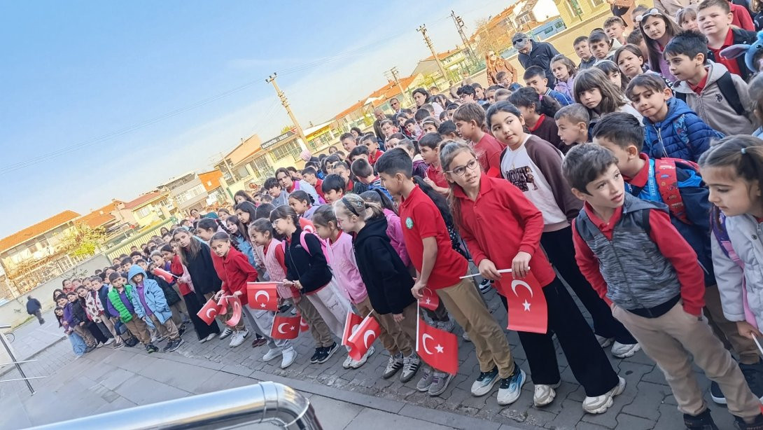 Törene katılan İlçe Milli Eğitim Müdürü Ünal, öğrencilerle birlikte İstiklâl Marşı'nı okuyarak birlik ve beraberlik mesajı verdi.