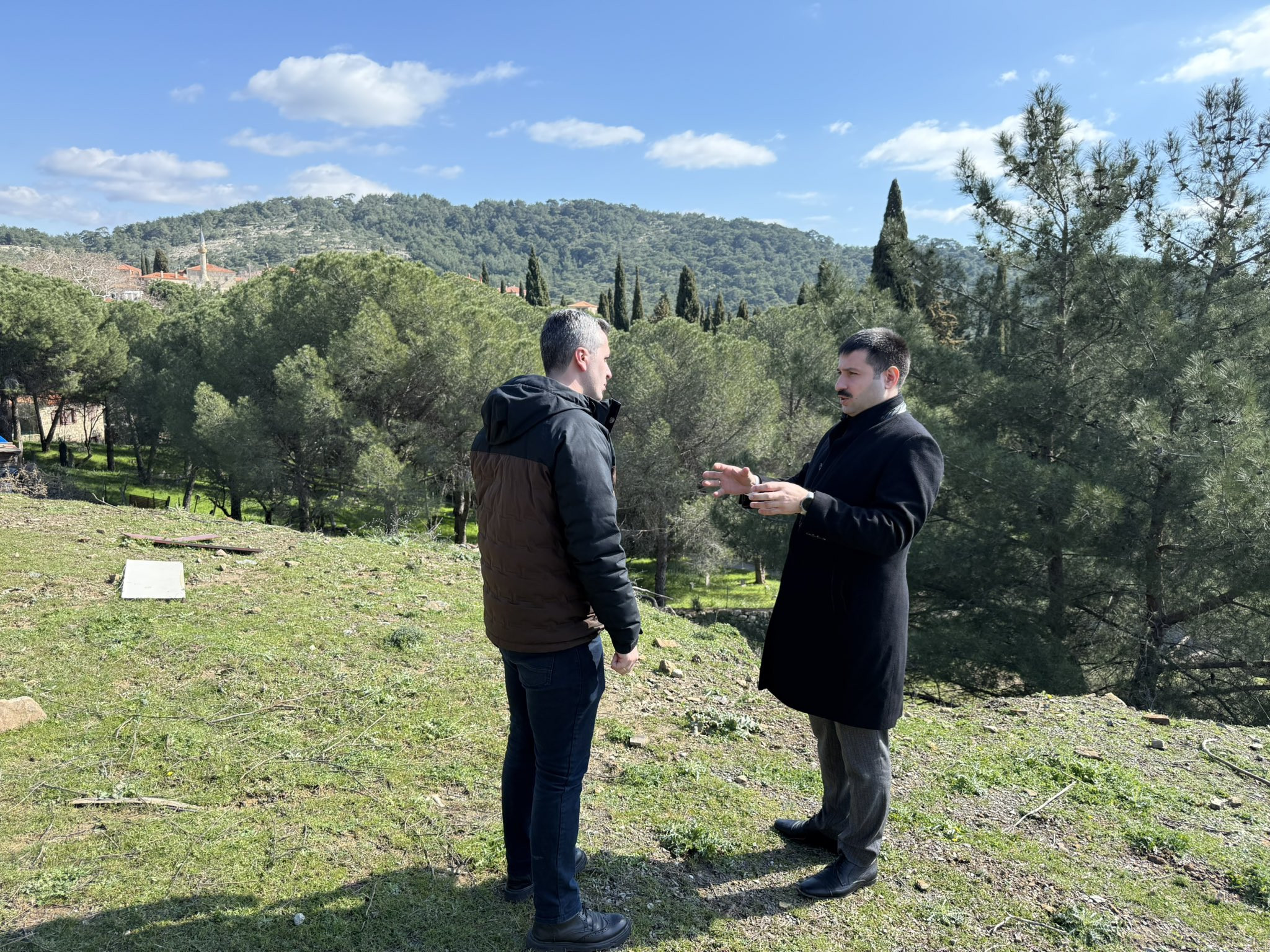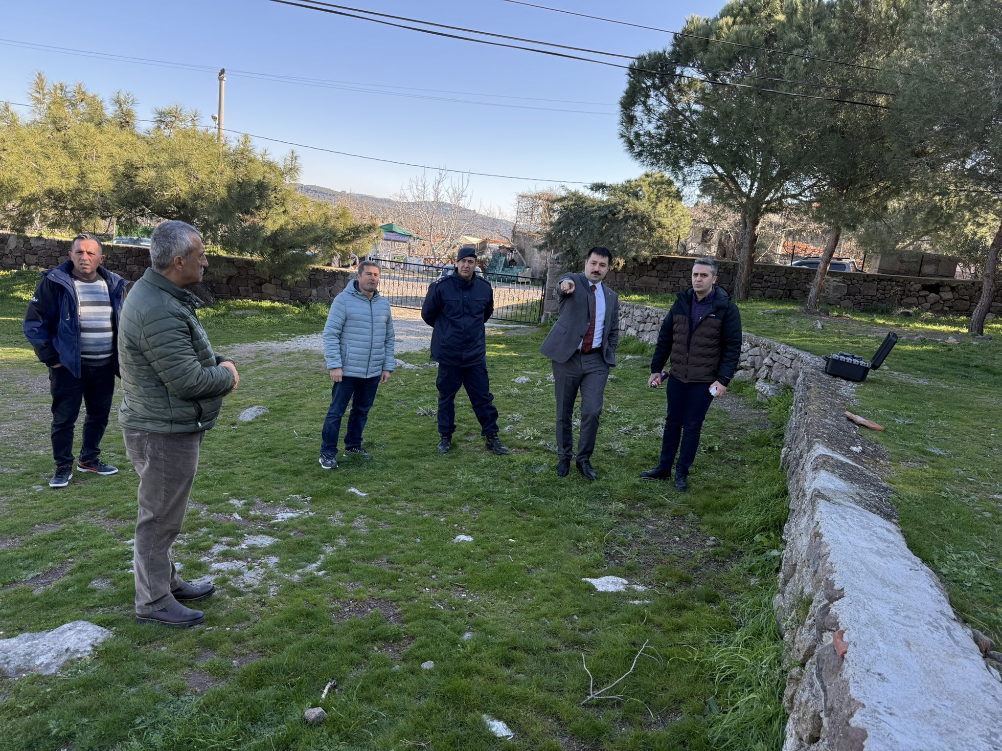Ayvacık Kaymakamı Mustafa Karaali, İlçe Jandarma Komutanı Üsteğmen Erdem Tuğrul Erdoğan, Çanakkale İl Özel İdaresi Harita Mühendisi Fehmi Babayiğit ve Behram Köy Muhtarı Numan Türkay ile birlikte Köyde planlanan çalışmalar kapsamında sahada incelemelerde bulundu.