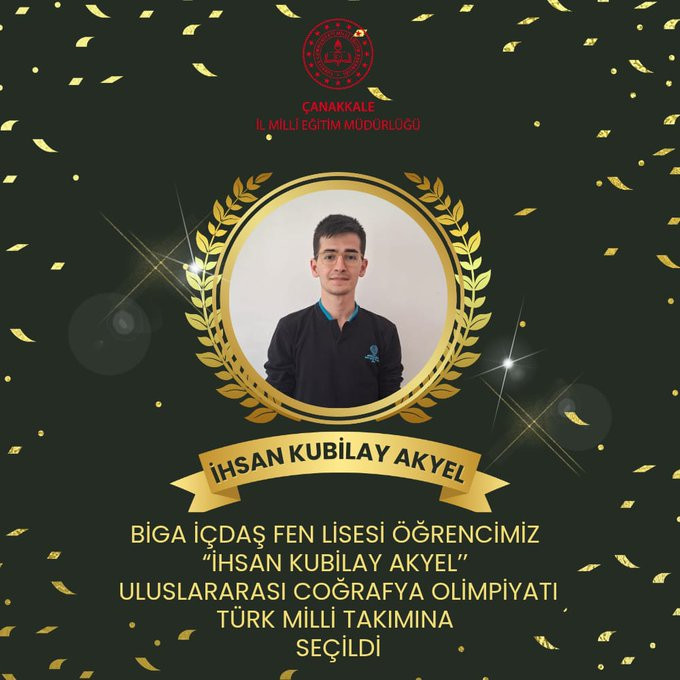 Biga İÇDAŞ Fen Lisesi öğrencisi İhsan Kubilay Akyel, Uluslararası Coğrafya Bilim Olimpiyatları (iGeo) Türkiye Milli Takımı’na seçildi.