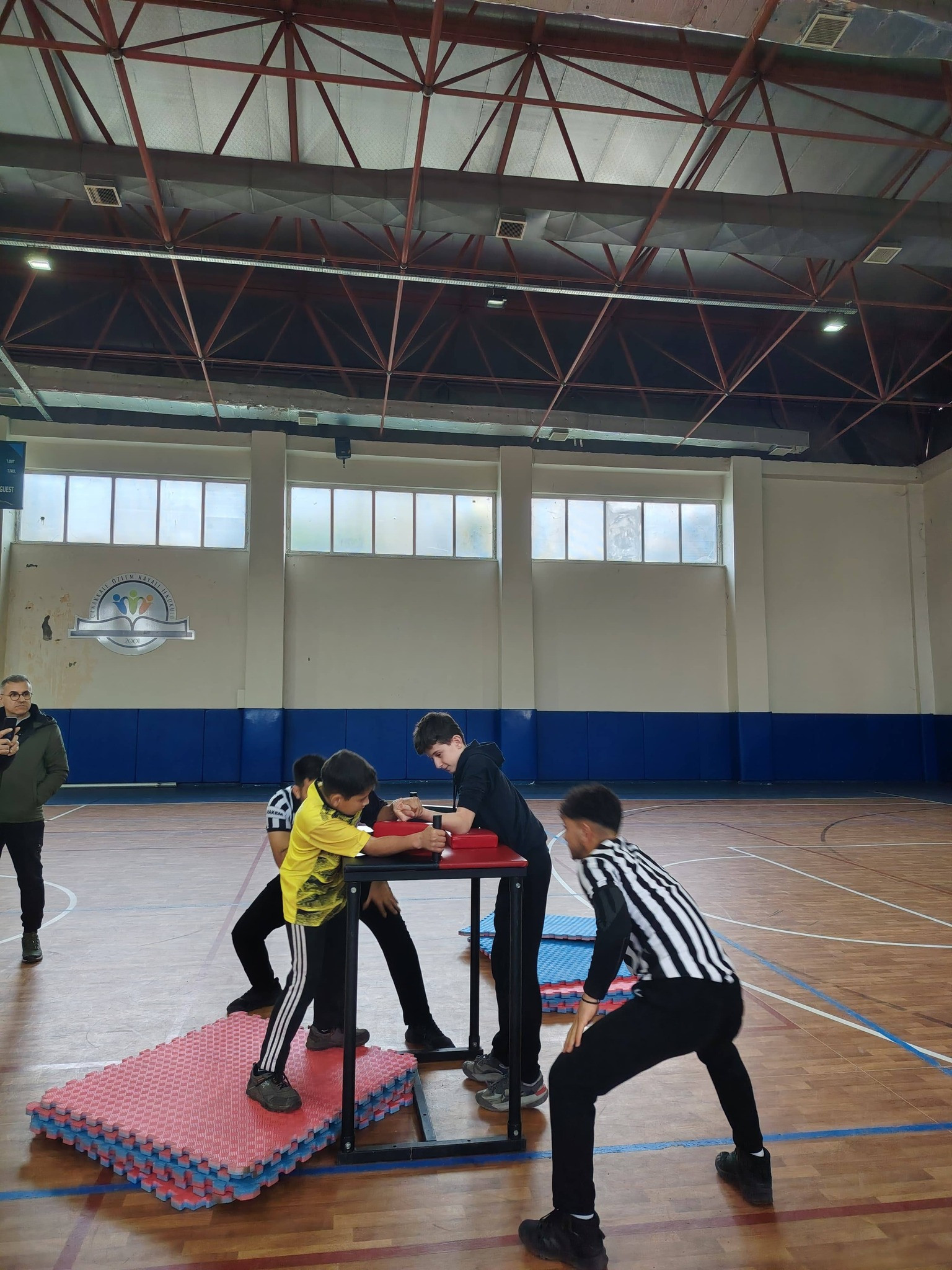 Çanakkale Okul Sporları Bilek Güreşi Yıldız Erkekler İl Müsabakalarina katılan öğrenciler,