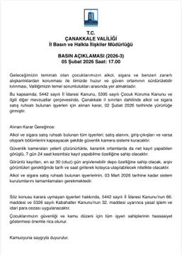 2026/1 Sayılı Valilik Kararına İstinaden Alkol ve Sigara Satış Ruhsatı Bulunan İşyerlerinde Güvenlik Kamerası Zorunluluğu Hakkında Basın Açıklaması