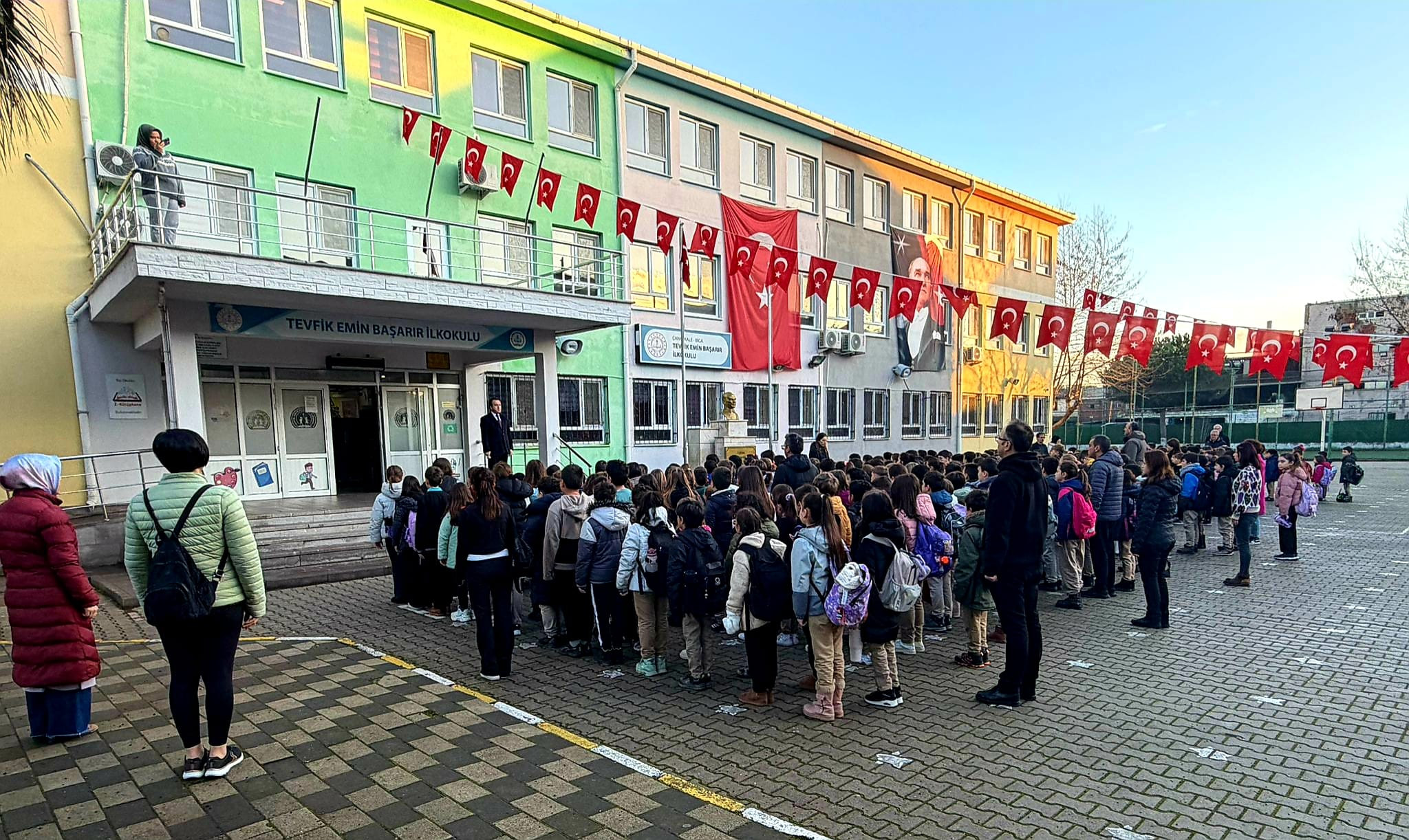 Kahramanmaraş merkezli 6 Şubat depremlerinin üçüncü yıl dönümünde tüm ilk ve ortaöğretim kurumlarında ilk ders öncesinde saygı duruşunda bulunuldu.