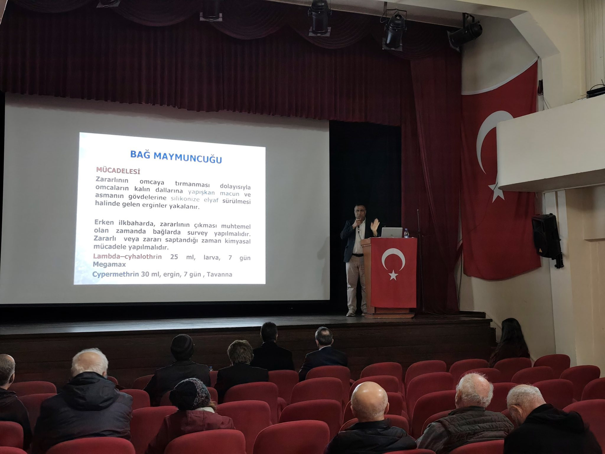 Eğitim kapsamında; bakteri izolasyonu ve mikrobiyal gübre kullanımı, asma denemeleri, organik ve iyi tarım uygulamalarında hastalık ve zararlı mücadelesi ile meralarda mikrobiyal gübre kullanımı konularında bilgilendirme yapılmıştır.
