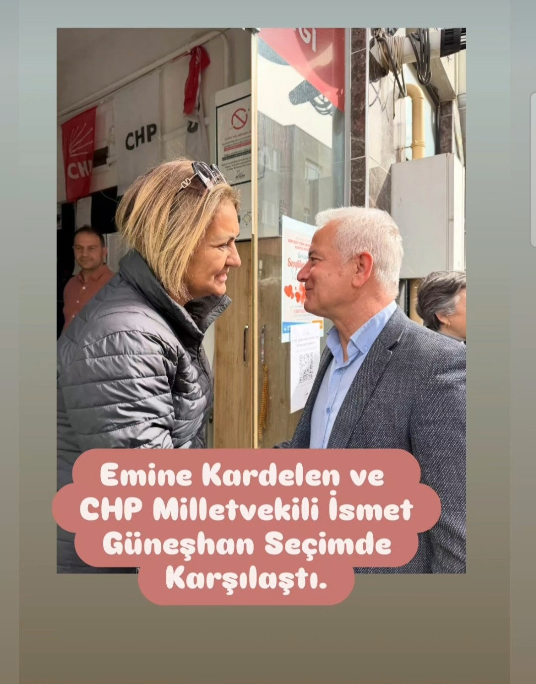 Bu arada oy kullanmak için gelen eski il kadın kolları başkanı Emine Kardelen'le de kısa bir süre sohbet ettiği gözlendi.
