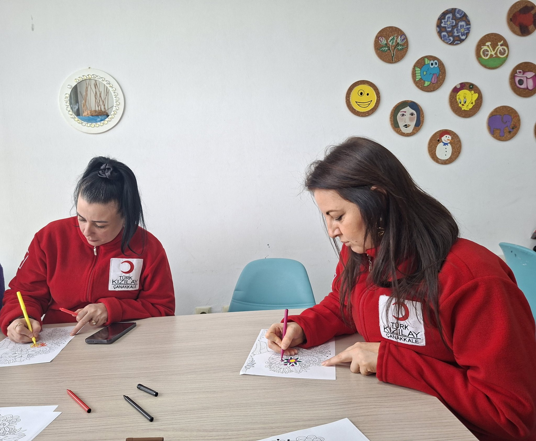 Çanakkale Kızılay Kadın Teşkilatı gönüllülerye birlikte, renklerin ahengiyle desenlere mandala boyama atölyesinde çalıştılar