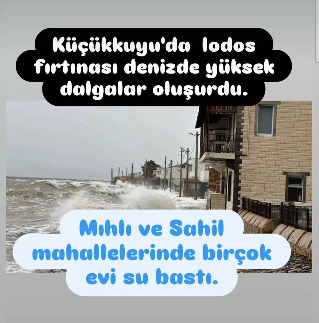 Küçükkuyu Beldesi'nde lodos fırtınası denizde yüksek dalgalar oluşurdu